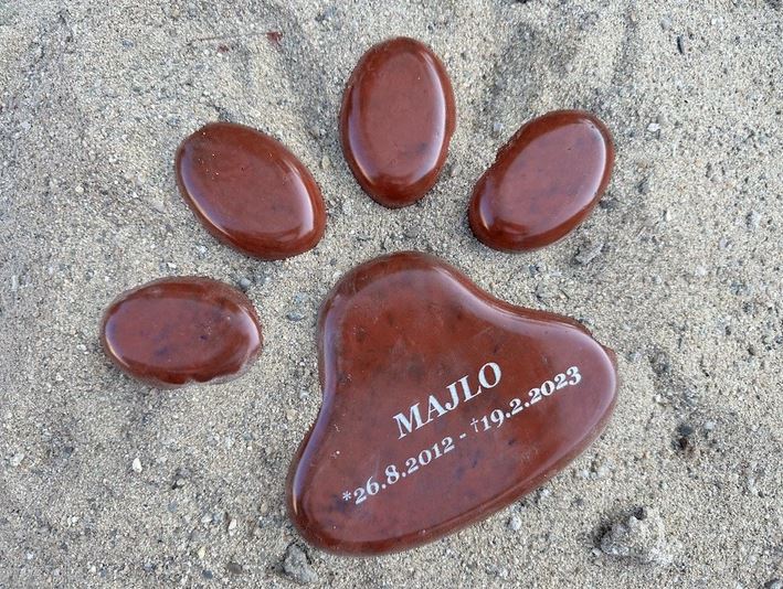 If you want to make the animal grave stone even more personal with a red-black paw , you can have it engraved with a name, date or a loving text so that a very individual memory is created. Buyers have the choice between engravures in gold or silver, with both variants give the memorial stone a noble note. This creates a unique memorial that reflects the character of the deceased animal and permanently reminds of the time together.