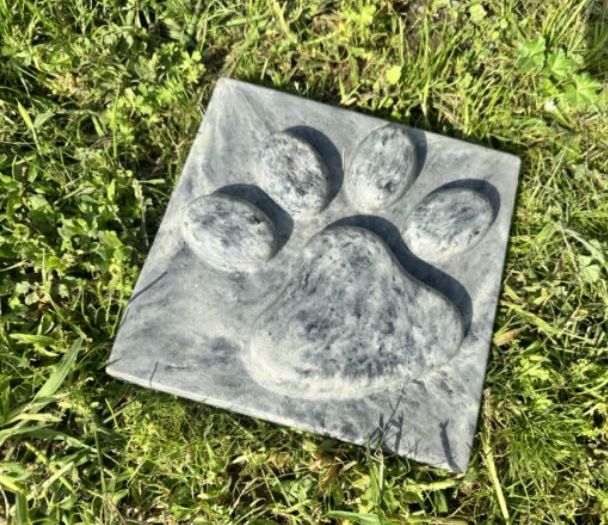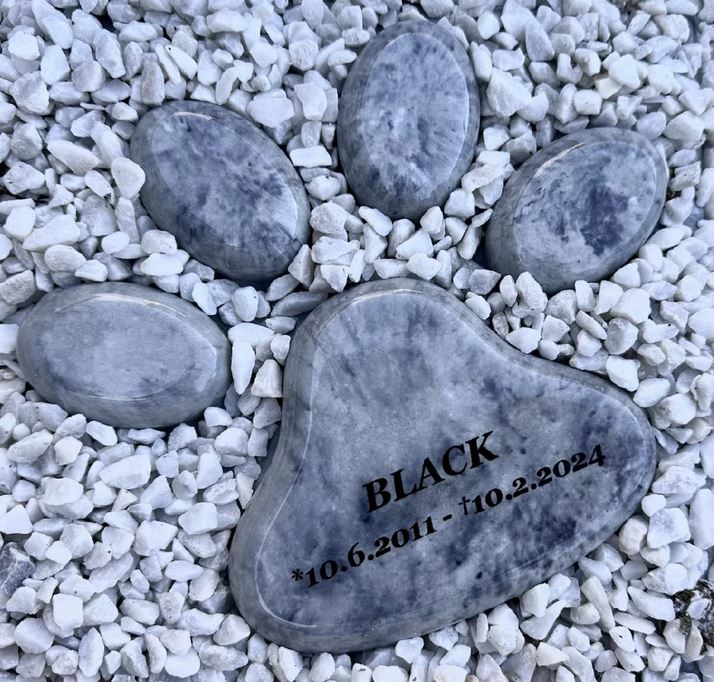 Piatră memorială pentru câini cu putere simbolică: laba alb -negru ca semn de dragoste