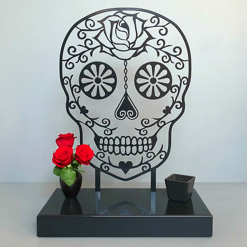 Abmessungen (HxBxT): Plateau: 28 cm x 15 cm x 2,5 cm, Sugar Skull: 37 cm x 28 cm, 2 mm dick